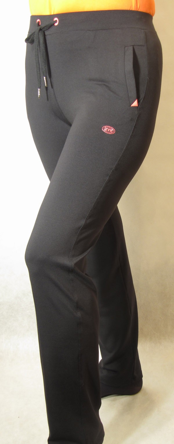 Брюки классического силуэта. Пояс на кулиске. По бокам прорезные карманы, декорированные вставками контрастного цвета. Удобны для спортивных занятий и для отдыха.